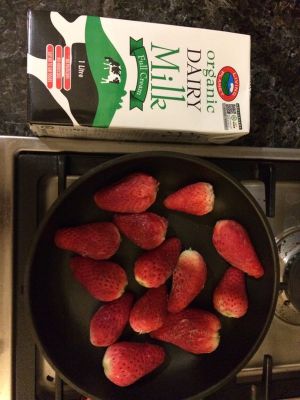 利用vitamix等搅拌机,将牛奶、草莓和蜂蜜打碎即可。