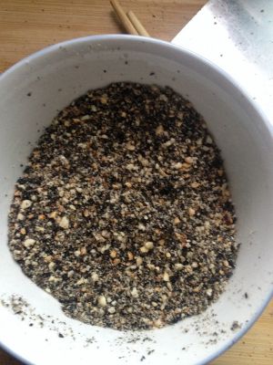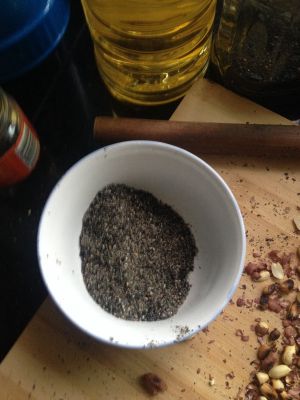 将花生和芝麻拌在一起,在加入适量的盐,就可以了,