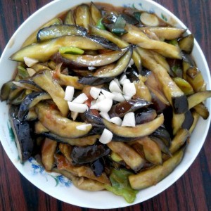 之前茄子用盐盐一下,将近半小时,可去茄子里的水,忘了拍了~~然后裹上淀粉过油炸,喜欢软点的,多炸一会儿~~