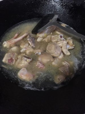 加入生抽、老抽,料酒、白酒,八角。大火煮至软。
