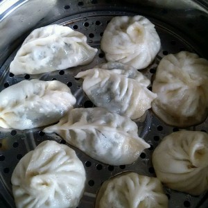 然后把面揉好,切成小块,做成比饺子皮稍微厚点,大点就可以了!包好之后放在蒸笼上醒一会儿,大概十几分钟就可以了!醒好之后就可以开火蒸了,大火烧开之后开中火,蒸半个小时就熟了!这是肉馅的成品图哦!