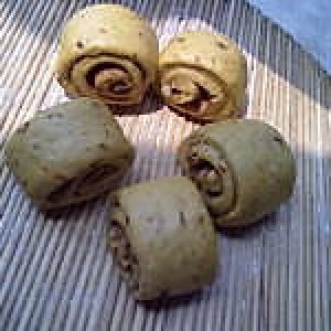 摸好后,从面饼的一端,卷之到另一端 (卷时,将其卷紧)切成馒头