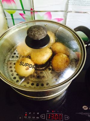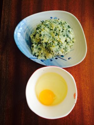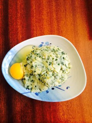 蒸熟的土豆制成土豆泥,加一个土鸡蛋!