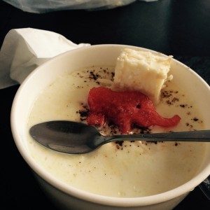 加入蒸热的奶,留奶皮小部分奶在碗底,其余倒入蛋清液中!