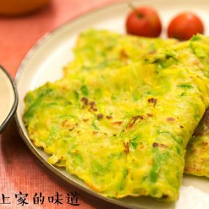 锅内加入食用油,转动锅使其均匀的铺到锅底,倒入搅拌好的面糊,使其均匀摊开在锅底