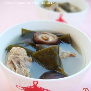 净锅内加入2000克清水,放入排骨、葱段、姜片、料酒,用旺火烧沸,撇去浮沫。倒入海带块,再用旺火烧沸即转小火炖两个小时,