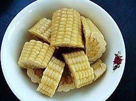 洗净的猪手放入砂锅,加入甜玉米、姜片、黄豆,料酒一次性加入足够的水(加劈开的甜玉米会使整锅汤充满玉米的甜香,使汤汁味道更清甜)。