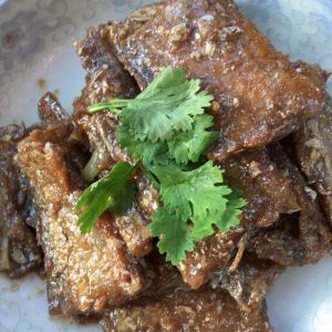 另起锅倒入底油,爆香葱姜蒜八角,放入煎好的带鱼,倒入生抽,醋,糖调味,再倒入少许水大火闷煮一分钟。出锅。