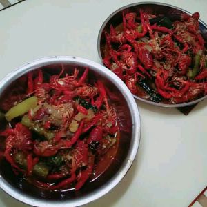 放入香料后加入小龙虾翻炒到变色,再加入所有的配菜,闻到香味后加入400毫升的啤酒,什么啤酒都可以,我用的是百威,煮十分钟,确保香料的味道与小龙虾一起入味再加黄瓜