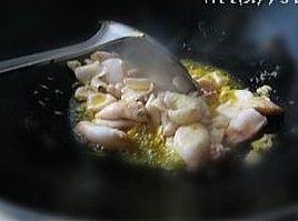 锅里加油,烧热,葱姜末爆香,将鱿鱼倒入翻炒,加盐和少许酱油调味,