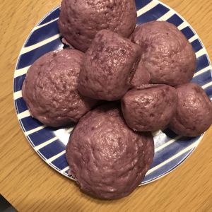 放面粉,大概3勺,和的时候加温水,因为紫薯会发干,所以可以多加点水。