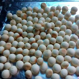 搓成长条,如果觉得太黏不好操作可以稍微在硅胶垫撒一点点马铃薯定粉,一点点就好,然后切成一个个小丁,再拿到手心揉成小圆球,尽量大小一致。一次可以同时揉三个。
