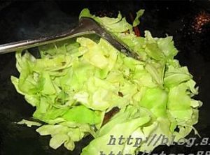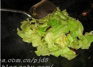 辣椒一变颜色马上调大火,把撕好的大头菜扔进锅里,急火爆炒,此刻一定要开油烟机啊,否则你要连连打喷嚏