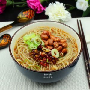 炒过花生的油,放入黄豆酱、干辣椒爆香,再加入香醋、生抽煮沸;