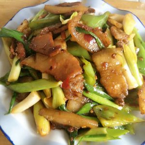 再放入蒜苗继续翻炒均匀 炒几下就可以出锅了