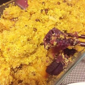 (无图)再倒入少量糯米粉,拌匀。糯米粉的作用是让玉米渣更好的附着在肉片上。
