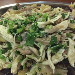 蒸熟的鸡放凉后撕成丝状,加入所有调味料,试味。