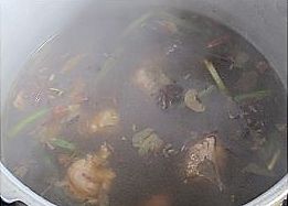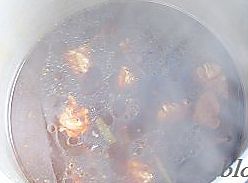 牛肉和其他放一起的调料放入高压锅,水量到锅的三分之二满左右,盖上锅盖;