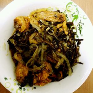 开盖放入泡好的臻蘑,再炖半小时。放盐。