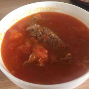 将番茄牛腩放入高压锅内,压50分钟左右即可,出锅后可根据个人口味加盐或者香菜点缀。
