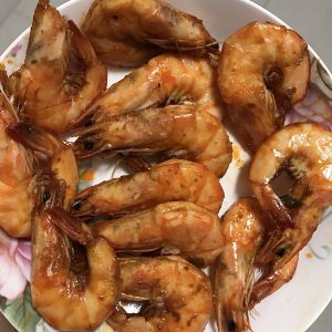 放虾炒至两面变红,加入酱油一小勺,白糖半勺,少许盐,用铲子按压虾头会有虾油出来,味道更鲜美