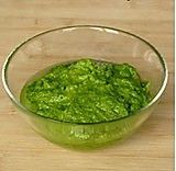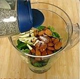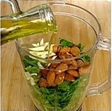 把除意面、柠檬以外的所有材料放入搅拌机打碎搅拌均匀,即成香菜杏仁蒜泥青酱;