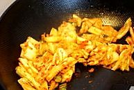 *锅里油烧热,放葱花爆锅,下泡菜翻炒出香味,再放粉条和调料翻炒片刻后,加少许水略煮,收汁即可关火。