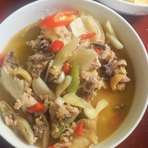 最后加红辣椒 煮5分钟 最后放少许十三香 生抽 和白糖 就可以出锅了(白糖提鲜的 比放鸡精要好 本人一直喜欢放白糖)