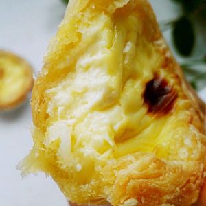 把蛋挞液均匀的倒入生坯中,倒8分满,太多容易溢出。