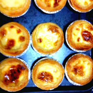 将蛋挞皮中倒入挞液,烤箱中层200-220度,20分钟左右(上咖啡斑色为好)