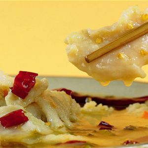 放入鱼片,撇去浮沫,加入泡椒5个,转中火煮3-5分钟至鱼肉变白,盛出装碗