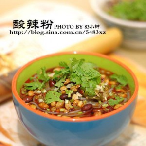 撒上熟花生米碎和酥炸黄豆,香菜末即可。