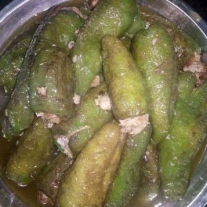 全部煎好后,锅内留少量的油,把所有煎好的酿辣椒倒回锅内,加入一小碗水,加点耗油调味