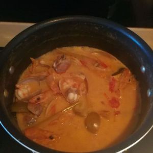加入文蛤,大虾继续小火熬煮即可。