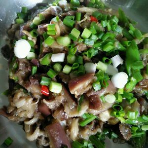最后装碗,撒上葱花便可,一碗香喷喷的炒茄子就成了。