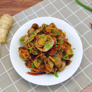 1.新鲜花蛤,加入清水,加盐,静置2小时,让花蛤自己吐出沙子。