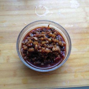 放入豆瓣酱,可加入少许甜面酱。变色,加料酒,略炒后加入西红柿沫,炒汁变多,根据口味添加少许糖,再加醋。