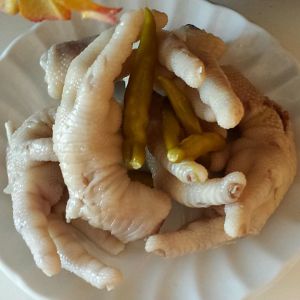 用凉水冲凉冲透后,放入干净器皿里,放入糟卤,泡椒水和泡椒,最好糟卤没过鸡爪,然后放入冰箱搁置2-4小时后食用,我这里是泡了overnight.