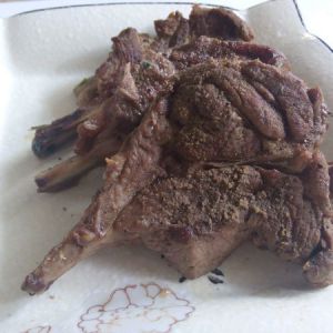 葱、姜、月桂叶、牛至叶等香料切碎,少量热水水浸泡,变温后放入羊排腌制2个小时