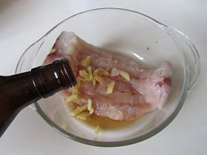 放入碗中, 加入姜片, 盐 ,胡椒粉和料酒等调味料;