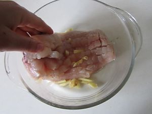 用手抓匀后将鱼肉腌半小时;