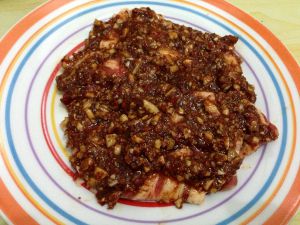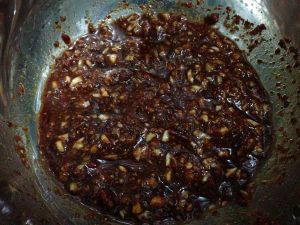 烤肉酱的材料:辣椒粉、花椒粉、孜然粉、五香粉、蒜末、辣豆瓣(最好用刀剁一下)、糖