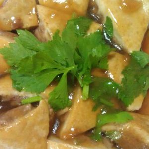 用筷子夹起煎好的豆腐摆盘,锅里剩少量油不要浪费。先在碗面放两一勺生粉,两勺酱油,少量味精,用少量水和开。将和好的淀粉水加入原锅中煮开,淋到豆腐上面。这样的豆腐有汁而且色泽艳丽。