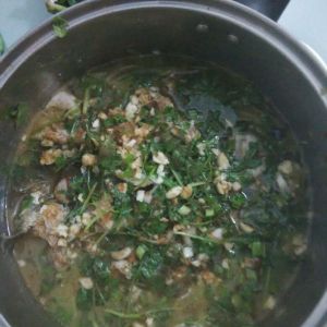 锅里放油,先把鱼骨放进去煎一下然后加水。大火把汤熬白