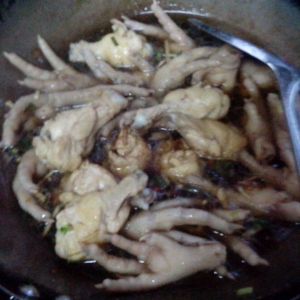 把切好的葱姜下油锅炒出香味,再把处理好的鸡翅根鸡爪倒入锅中炒至微变色