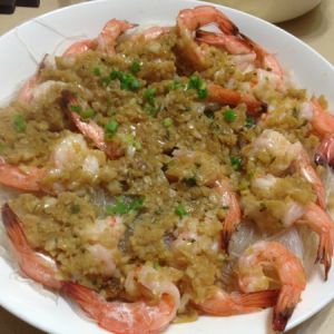 准备好蒜蓉,姜末,葱花,锅中烧油把这三样下锅爆香,加入调料和水,做好蒜蓉汁后淋在准备好的虾和粉丝上