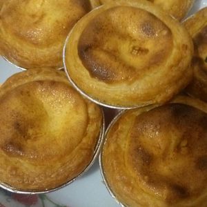 将蛋挞水过滤,蛋挞皮摆在烤盘内,蛋挞皮里可以先放入红豆,紫薯,或者香蕉,我放的是红豆,倒入蛋挞水,八分满。