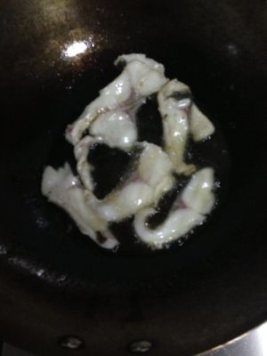 锅里放油烧热后关小火,鱼肉沾鸡蛋清入锅小炸,让鱼肉定型,翻炒时不易垮。