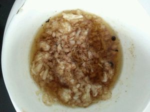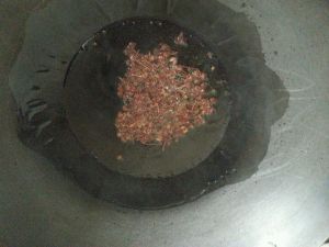 捣好的蒜泥上加半勺五香粉,热油泼蒜泥,油要泼在五香粉上。其实辣子面也可以放在蒜泥上一起泼,主要是有儿子,所以没放辣子面