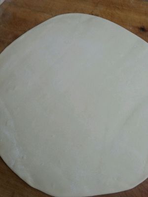锅上烧水,准备焯下锅菜。烧水的时间把和好的面团擀开成面饼,面饼不要太厚。用湿布盖起来兴着。面饼可以在煮西红柿是抽空就擀好,多兴一会。